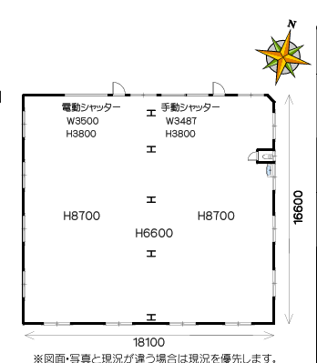 クレーン設置相談可能!天井高8.7M・軒下6.6M