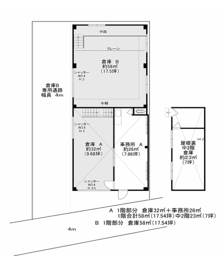 シャッターW3.4mXH3m・前面スペース搬入搬出時に利用可!