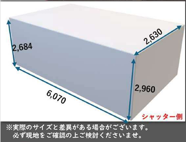 シャッター間口2.63m×高さ2.96m×6.07m(ワゴン車・バイクOK)