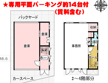 阪神本線大物駅徒歩約10分「R2号線沿い一棟ビル(事務所・倉庫)+専用パーキング約14台可」貸事務所・倉庫・駐車場!