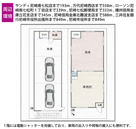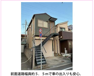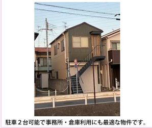 トイレ・電動シャッター・リフト・2階へは外階段・駐車場2台可・前面道路約5.5m面す
